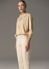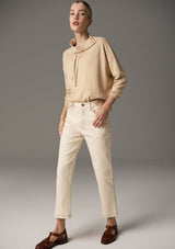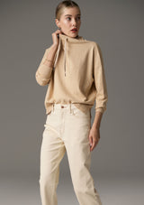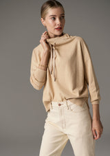 The Beech Drawcord Knit by POL Clothing features a wide funnel neckline with drawcord and bracelet length sleeves with ribbed detail at cuffs and hem. This relaxed fit top is made from a cotton and cashmere blend and is ideal for spring layering.