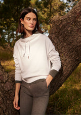 The Beech Lounge Pant by POL Clothing features a drawstring waist with a slim leg, pockets and ribbed band hem detail. This comfy pant is made from a cotton and cashmere blend and is ideal for spring.