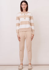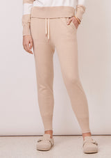 The Beech Lounge Pant by POL Clothing features a drawstring waist with a slim leg, pockets and ribbed band hem detail. This comfy pant is made from a cotton and cashmere blend and is ideal for spring.