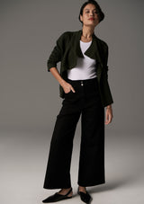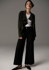 The Bennet Double Knit Coat by POL is made in a classic biker shape that features a solid colour on the outside, with a contrast colour on the inside
