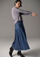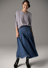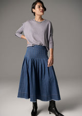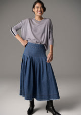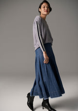 The Bennet Drape Knit by POL is made from lightweight merino with a contrast stripe sleeve