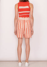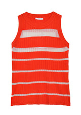 Designed by Australian brand, POL Clothing; The Bren Tank is made from viscose blend. Featuring ribbed detailing with semisheer and opaque stripes, round neckline, fitted silhouette and wide rib detailing.