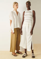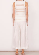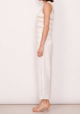 Designed by Australian brand, POL Clothing; The Bren Tank is made from viscose blend. Featuring ribbed detailing with semisheer and opaque stripes, round neckline, fitted silhouette and wide rib detailing.