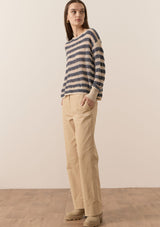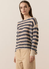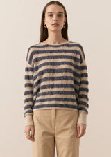 The Bronte Pointelle Cable Knit from POL Clothing showcases a crew neckline, dropped armholes and full-length sleeves with ribbed cuffs. Made from a fine wool blend, this knit highlights multi-textured stripes and cable knit detail. It combines the appeal of a chunky knit with a fine texture, making it perfect for layering.