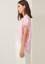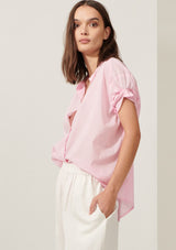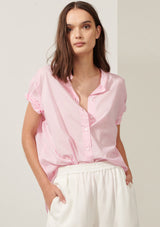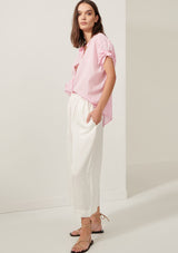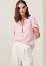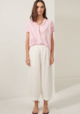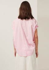 The Cappa Shirt from Australian Designer, POL Clothing is crafted from a luxurious Cotton Voile. It features a stand collar, button through closure, short sleeves with twisted pre-rolled cuffs and a curved hem.