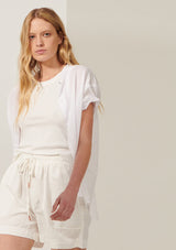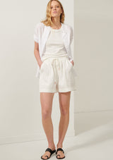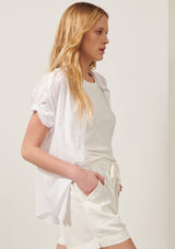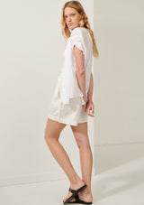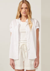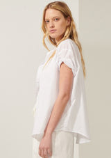 The Cappa Shirt from Australian Designer, POL Clothing is crafted from a luxurious Cotton Voile. It features a stand collar, button through closure, short sleeves with twisted pre-rolled cuffs and a curved hem.