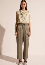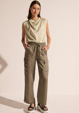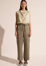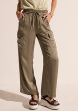 The Clese Cargo Pant from POL Clothing features an elasticised waistband with a drawcord tie, hip pockets and a wide leg with patch pockets in classic militaristic cargo styling. Crafted from a luxe silk-like viscose satin blend, this pant will lend you an incomparable relaxed and polished look.