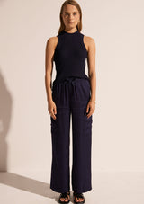 The Clese Cargo Pant from POL Clothing features an elasticised waistband with a drawcord tie, hip pockets and wide leg with patch pockets in classic militaristic cargo styling. Crafted from a luxe silk-like viscose satin blend, this pant will lend you an incomparable relaxed and polished look.