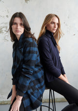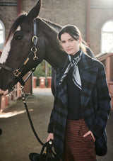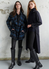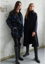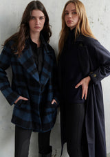 The Cleveland Pea Coat from POL Clothing offers a double-breasted design featuring large lapels with a notched collar, full-length sleeves and welted pockets. Crafted from a wool blend and sporting a check pattern with versatile navy lining, this boxy coat elevates a winter essential to a statement piece.