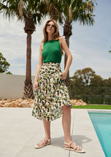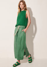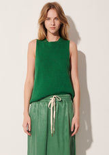 The Corsica Plain Tank by POL Clothing features a fitted sleeveless style with a ribbed crew neckline and ribbed hem. This knitted tank is made from a linen and cotton blend and is ideal for spring layering.