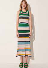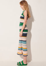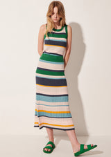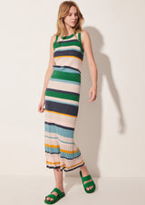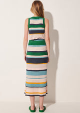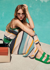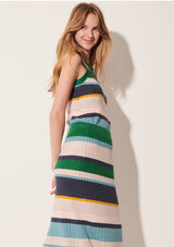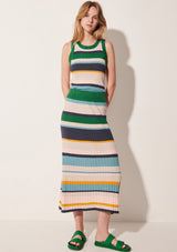 The Corsica Stripe Tank by POL Clothing features a fitted sleeveless style with a round neckline. This ribbed tank with a tonal stripe design is made from a linen and cotton blend and is ideal for spring layering.