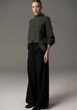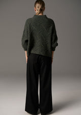 The Croft Knit by POL Clothing features a deconstructed cable detail and is made from a Merino and Recycled Nylon blend with multicolour flecks throughout