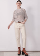 The Dapple Ribbed Knit from pol Clothing is a practical addition to your wardrobe, crafted with a lightweight ribbed yarn and boasting a high crew neckline and full length sleeves.