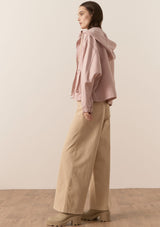 The Forster Outdoor Jacket from POL Clothing features a high stand collar and hood with a cotton cord drawstring, zip through front centre opening, full-length sleeves with elasticated cuffs and large functional patch pockets. This boxy cut jacket boasts a classic autumnal silhouette that is ideal for layering over any outfit.