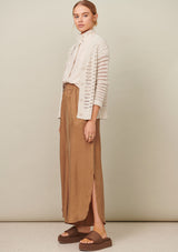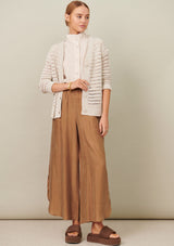 The Greta Cardigan by POL Clothing features a V neckline, bracelet length sleeves and ribbed detail at neckline, cuffs and hem. This pointelle knit cardi is crafted from a linen/cotton blend in a in a summery melange.