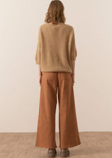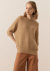 The Jane Pointelle Knit Tee from POL Clothing features a crew neckline and elbow length sleeves with ribbed detailing on the neck, sleeve cuffs and hemline. Crafted from a waffle knit wool blend fabrication, this relaxed fit top is ideal for spring layering.