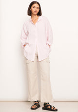 Made from soft linen denim, the Joss Denim Shirt features an oversized cocoon silhouette.Featuring classic shirt collar, raglan style with a dropped armhole and bracelet length sleeves. Designed to be a relaxed longline shirt with curved hem.