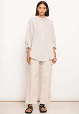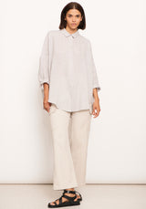 Made from soft linen denim, the Joss Denim Shirt features an oversized cocoon silhouette.Featuring classic shirt collar, raglan style with a dropped armhole and bracelet length sleeves. Designed to be a relaxed longline shirt with curved hem.