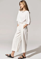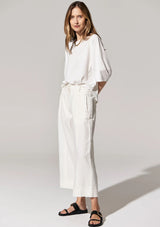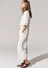 The Miley Crop Pant from POL Clothing features a zip fly with a double button closure and elastic at the centre back for a comfortable fit. It includes belt loops, hip and back pockets and boasts a cropped, wide-leg silhouette. This mid-rise cropped pant is detailed with seam lines down the centre front of the leg and contrast topstitching throughout. Crafted from soft cotton and ramie, it's a versatile addition to your everyday wardrobe.