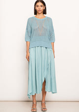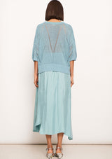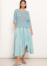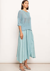 The Pier Knit from POL Clothing features a round ribbed neckline, dropped armholes, elbow length sleeves and V-shaped pointelle stitch detailing. Crafted from an ethically sourced, linen and cotton yarn, this charming knit is perfect for your spring wardrobe.