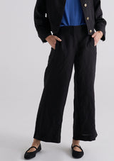 The Riley Pant from POL Clothing features a fixed waistband with belt loops, hook and bar, zipper, hip pockets and a full-length wide leg silhouette. Crafted from a luxe linen and tencel blend, this pant is perfect for workwear and in-between seasons.
