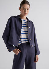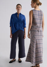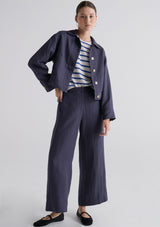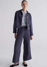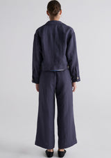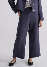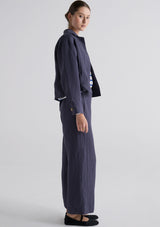 The Riley Pant from POL Clothing features a fixed waistband with belt loops, hook and bar, zipper, hip pockets and a full-length wide leg silhouette. Crafted from a luxe linen and tencel blend, this pant is perfect for workwear and in-between seasons.