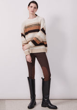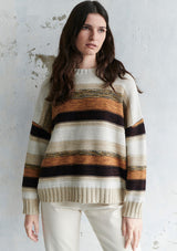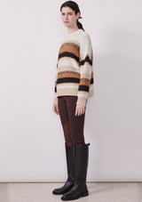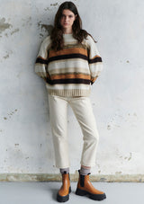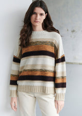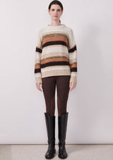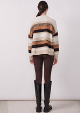 The Tori Multi-Stripe Knit by POL Clothing is trans seasonal dressing at its best. Featuring twisted yarns to create feature marle stripes while a chunky rib knit pulls in the cuffs and the hem.
