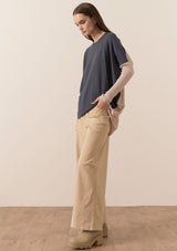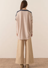 The Vidal Draped Knit from POL Clothing offers a contemporary twist on a timeless POL design, showcasing the signature draped back and striking contrast knit panels. With its wide round neckline, dropped armholes, and ribbed slim-fit full-length sleeves, this knit exudes modern elegance. The oversized silhouette gracefully drapes through the body, curving down at the back for added flair. Crafted from a luxurious blend of wool and cotton, the Vidal knit ensures both style and comfort.