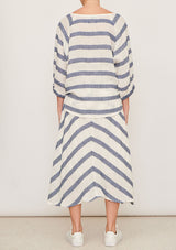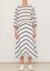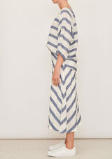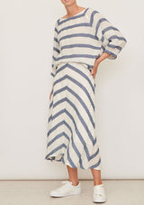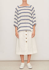 The Glace Top by Pol Clothing features a boatneck with raglan style and slightly puffed elastic 3/4 length sleeves and a curved hem. This casual top is crafted in an Italian linen and lurex striped gauze blend; a non-stretch fabrication that is breathable and ideal for everyday wear.