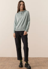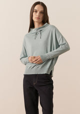 The Nucleus Drawcord Knit from POL Clothing features a wide funnel neckline with drawcord and full length sleeves with ribbed detail at cuffs and hemline. This relaxed fit top is made from a cotton and cashmere blend and is ideal for spring layering.