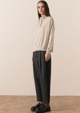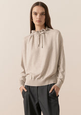 The Nucleus Drawcord Knit from POL Clothing features a wide funnel neckline with drawcord and full-length sleeves, a slightly cropped length and ribbed detail at cuffs and hemline. This relaxed fit top is made from a cotton and cashmere blend and is ideal for spring layering.