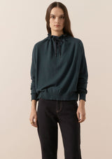 The Nucleus Drawcord Knit from POL Clothing features a wide funnel neckline with drawcord and full-length sleeves, a slightly cropped length and ribbed detail at cuffs and hemline. This relaxed fit top is made from a cotton and cashmere blend and is ideal for spring layering.