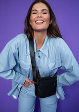 The PRENE x Chloe Fisher Minnie Bag is a stylish and practical accessory for everyday use. Crafted from durable neoprene with vegan leather detailing and dark metallic hardware, the bag features a top zip closure, front zip pocket, internal zip pocket and internal pouch, giving you plenty of room to store your essentials. An adjustable nylon strap allows for easy portability.