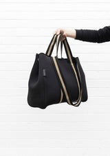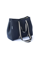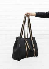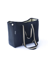 The Gigi Bag by Prene Bags is crafted from their renowned perforated Neoprene fabrication. This bag is lined with large zip pockets inside, magnetic button closure on either end, and a magnetic clasp in the middle.