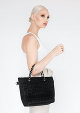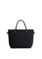The Wild Pebbles Bag from Prene Bags, is a seasonal twist on the classic XS Bag. Featuring a subtle embossed croc exterior detailing and signature contrast twist handle. Alternate detachable vegan leather strap for multiple styling options.