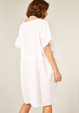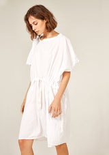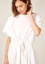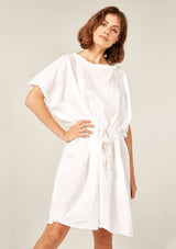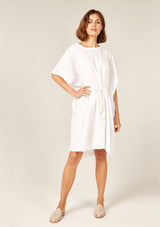 The Beach Cover Up by Primness is crafted from 100% Cotton Voile. This Beach Cover Up feature a rounded neckline and dropped sleeves with twisted edge detailing. Double neatened hemline. Oversized and relaxed, featuring a cotton herringbone belt.