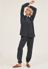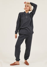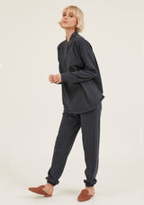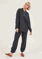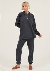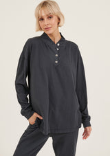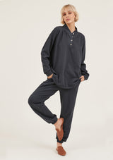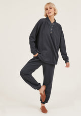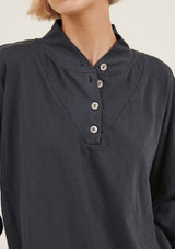 The College Pullover by Primness is crafted from 100% Organic Heavy Cotton fabrication. It features a button-up neck detail with banded sleeves. The hemline falls relaxed below the hips. Your new winter staple with a twist.