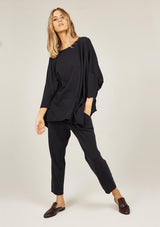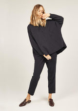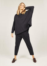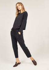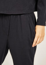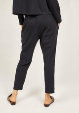 The Primness Cosy Twisty Pant is crafted from 100% Organic Heavy Cotton, a stretch fabrication. It features a relaxed fit, elasticised waistband, two internal side pockets with mock fly front. The silhouette features a tapered leg, light leg twist and natural stretch.