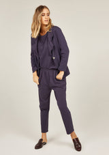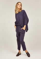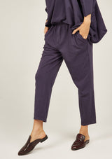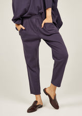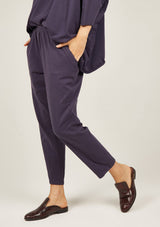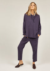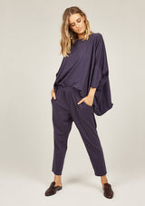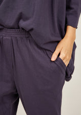 The Primness Cosy Twisty Pant is crafted from 100% Organic Heavy Cotton, a stretch fabrication. It features a relaxed fit, elasticised waistband, two internal side pockets with mock fly front. The silhouette features a tapered leg, light leg twist and natural stretch.