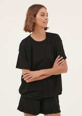 The Dally Tee by Primness makes for the perfect short sleeved piece in your wardrobe. Featuring a super soft organic heavy cotton in a relaxed straight cut, dropped shoulder and round neckline with a raw curled hemline.