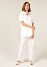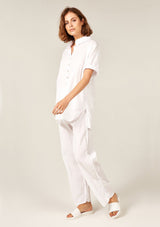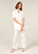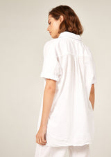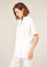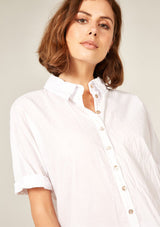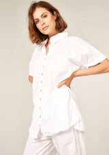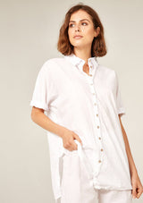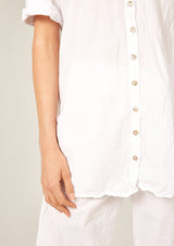 The Devoile Shirt by Primness is crafted from 100% Cotton Voile. This Devolie Shirt features short sleeves, with two hem splits. Back length is slightly longer. Back neck yoke features a pleat. Beautiful natural shell buttons on the front placket. French seamed and top stitched for a premium finish.