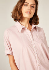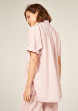The Devoile Shirt by Primness is crafted from 100% Cotton Voile. This Devolie Shirt features short sleeves, with two hem splits. Back length is slightly longer. Back neck yoke features a pleat. Beautiful natural shell buttons on the front placket. French seamed and top stitched for a premium finish.