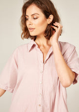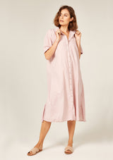 The Devoile Shirt Dress by Primness is crafted from 100% Cotton Voile. This Devolie Shirt is designed to be worn crushed and features short sleeves, with two hem splits. Back length is slightly longer. Back neck yoke features a pleat. Beautiful natural shell buttons on the front placket. French seamed and top stitched for a premium finish.