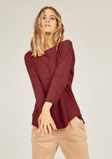 The HAP Long Sleeved Top is crafted in 100% Soft Cotton Jersey. It features a round neckline with twisted detailing, relaxed fit and asymmetric hem with raw edges. It has a natural stretch and a double needle sleeve cuff.
