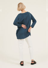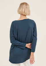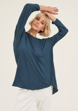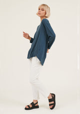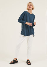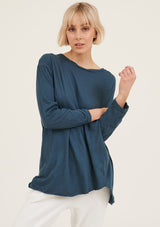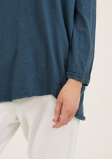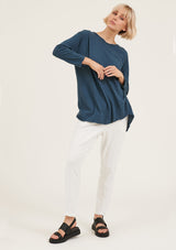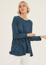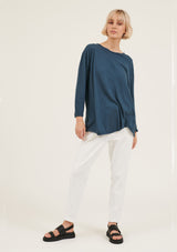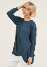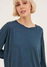 The Hap Long Sleeved Top is crafted in 100% Soft Cotton Jersey. It features a round neckline with twisted detailing, relaxed fit and asymmetric hem with raw edges. It has a natural stretch and a double needle sleeve cuff.