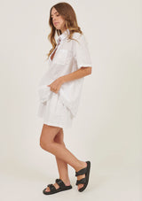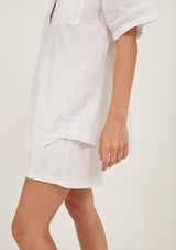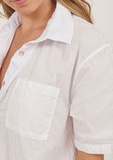 The Lala Shirt from Primness is an easy silhouette crafted in relaxed cotton. Designed to be crushed and non-iron. Featuring a semi dropped shoulder, turn up cuff and natural shell buttons on the front placket finished with an effortless collar. Two functional front pockets, side panel detailing and curved hemline. French seamed and top stitched. Casual fit with a loose body. Designed to get better with wear.