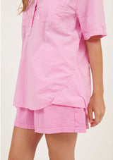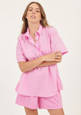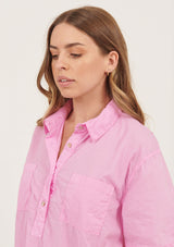 The Lala Shirt from Primness is an easy silhouette crafted in relaxed cotton. Designed to be crushed and non-iron. Featuring a semi dropped shoulder, turn up cuff and natural shell buttons on the front placket finished with an effortless collar. Two functional front pockets, side panel detailing and curved hemline. French seamed and top stitched. Casual fit with a loose body. Designed to get better with wear.