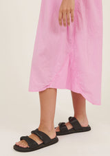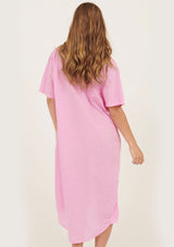 The Lala Shirt Dress from Primness is an easy silhouette crafted in relaxed cotton. Designed to be crushed and non-iron. Featuring a semi dropped shoulder, turn up cuff and natural shell buttons on the front placket finished with an effortless collar. Two functional front pockets, side panel detailing and curved hemline. Falls past the knee. French seamed and top stitched. Casual fit with a loose body. Designed to get better with wear.