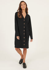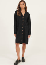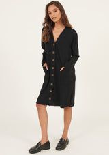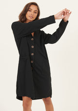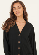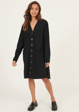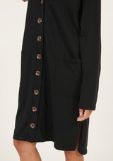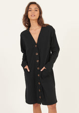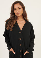 The Lina Long Lined Cardi by Primness is a transeasonal must-have. Boasting a soft organic heavy cotton fabrication to keep you cosy and comfortable in the cooler months. Featuring tortoiseshell buttons, dropped shoulders and a long-lined cut, two functional side pockets, twin needle hemline and sleeve edge. Wear on its own as a dress or layered as a jacket.