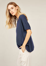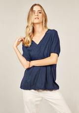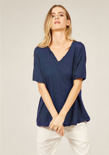 The Loose V Tee by Primness is crafted from 100% Cotton. This Top features a wide v shaped neckline and twin needle hem detailing. This style is a relaxed fit, with a longer hem length.